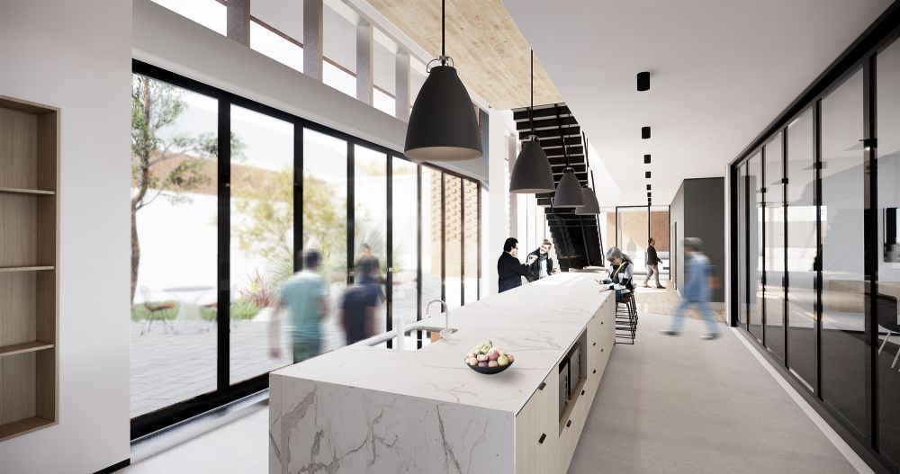 The new 2 storey development will replace the current administration office located in Wayville and the production kitchen in Kent Town. The kitchen and office spaces are arranged around a central garden courtyard creating space for kitchen and office staff to work, meet and connect.