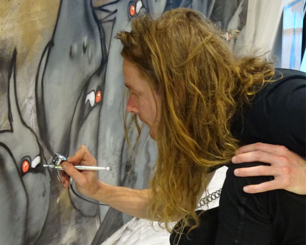 Store (Simon K Burt), presented an exhibition of the street artist's work which explored the connection between street culture and the design world. A skateboarder, graffiti writer and resident in the CBD for the majority of his life, street culture has been a strong inspiration for his work. Displayed throughout our studio, the collection juxtaposed Store's old school style and composition of graffiti with his newest and most recognised characters, the pigeons. Part of the experience involved Store creating a piece in real time in the studio. Store works with street youth culture and engages with them through art and experience; himself a direct example of street life transformation through art.