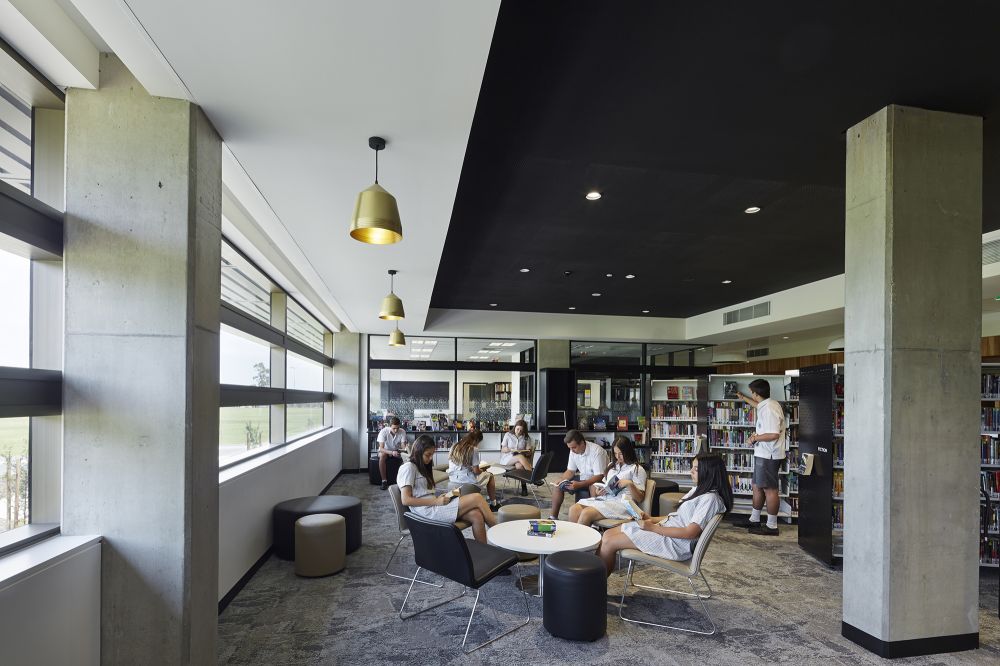 Adaptable spaces and a physical connection between indoor and outdoor areas are key to the planning, with digital and traditional resources available throughout the study and breakout spaces. In the Resource Hub, students and teachers have expanded collections, access to a variety of study and meeting spaces and areas to express themselves with an interactive gallery and 3D display.