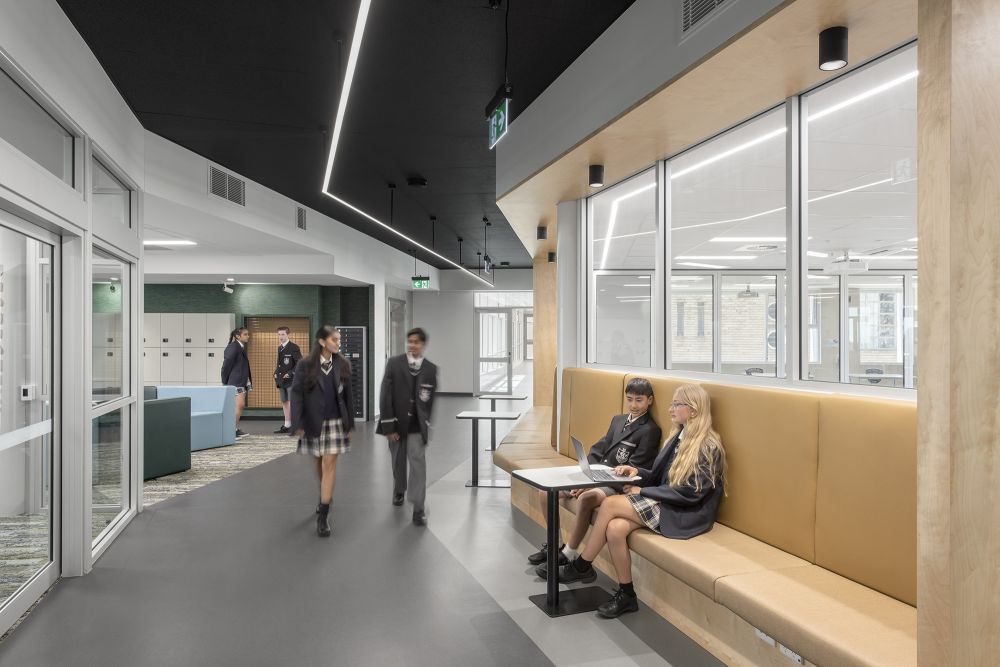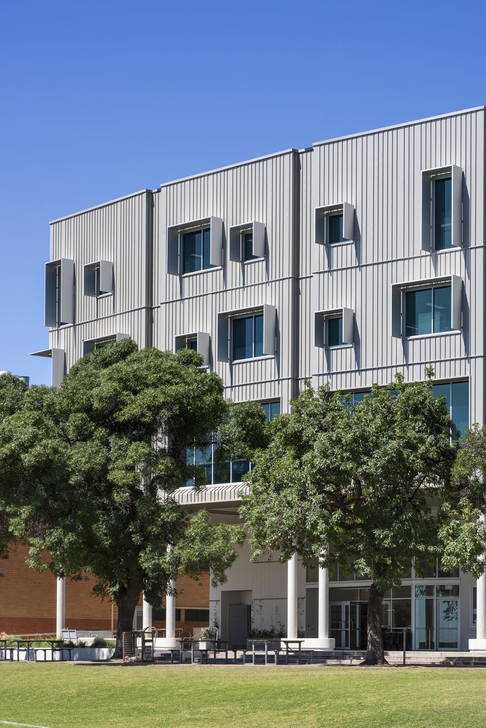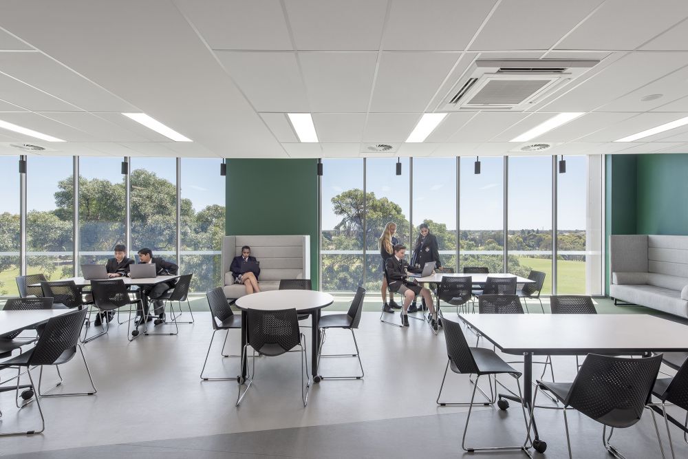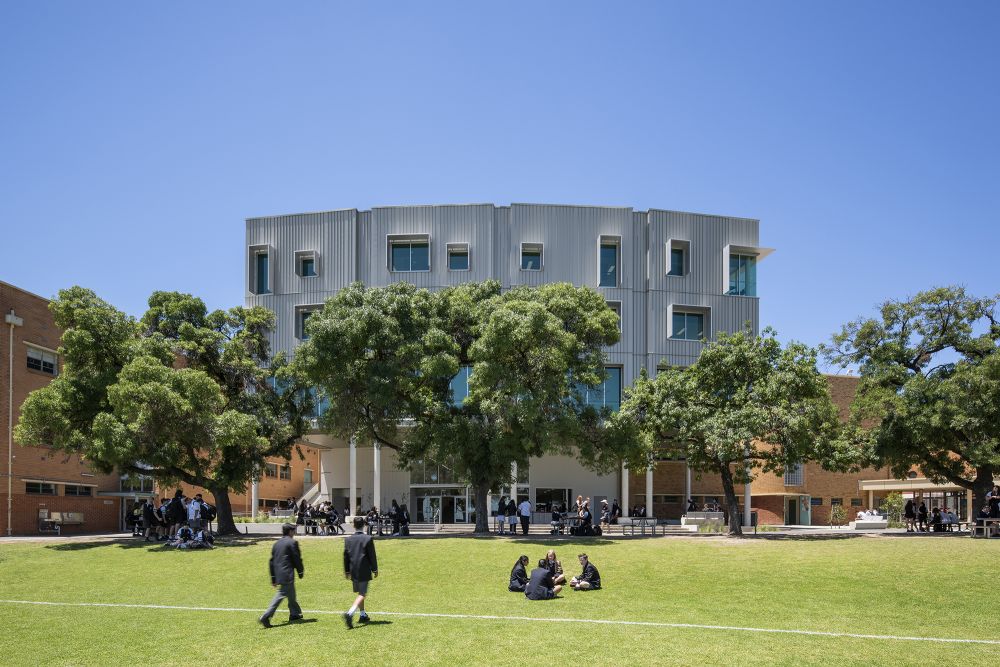 The Hive Building does not seek to look the same as the historic brick buildings but to be a counterpoint to them, expressing a new future for the school where the ability to adapt, experiment and encourage independent learning is at the forefront. The new terraced student veranda and cafe adjacent the Park Lands activates and signifies that this is no longer the back of the school. The Hive Building is the new face to community life and represents the school’s entrepreneurial mindset and contemporary pedagogy.