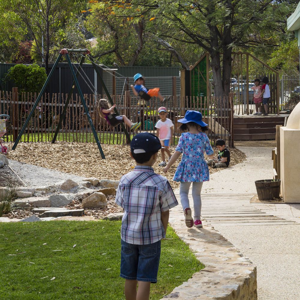 The Campbelltown Preschool, is a long, linear site located opposite the Campbelltown Library and Community Centre. The design response connects to the story of Fourth Creek, a creek which runs through Campbelltown, and representationally weaves its way through the new design for the Campbelltown Preschool outdoor learning space.
