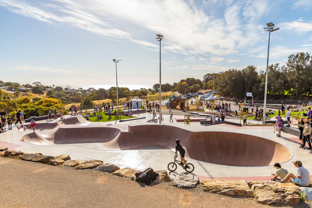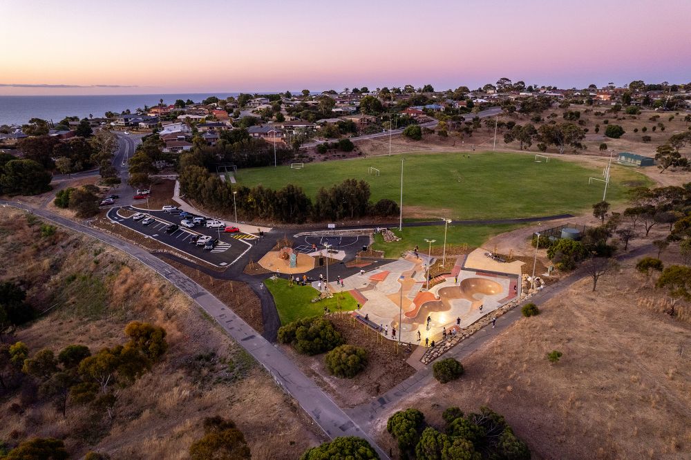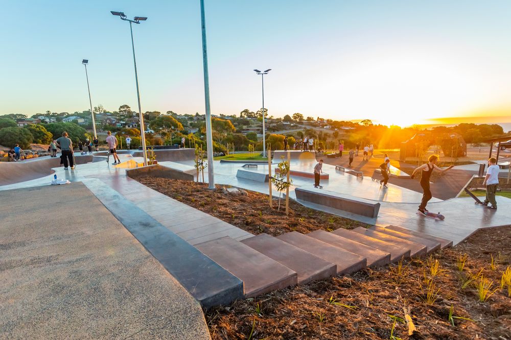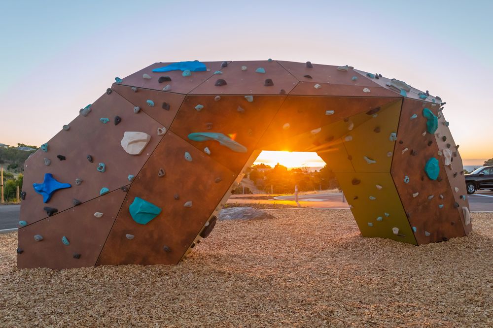 Responding to the topographical context of the coastal suburb of Hallett Cove, the reinvigoration of Capella Reserve provides valuable open space for the local community to partake in active recreation. Our design response is inspired by the strong geological formations of Hallett Cove and seeks to improve biodiversity while providing infrastructure that encourages the public to spend more time outdoors. Capella Reserve now provides a diverse range of offerings including a skate park, bouldering and climbing facilities, parkour equipment along with adventure and nature play infrastructure.