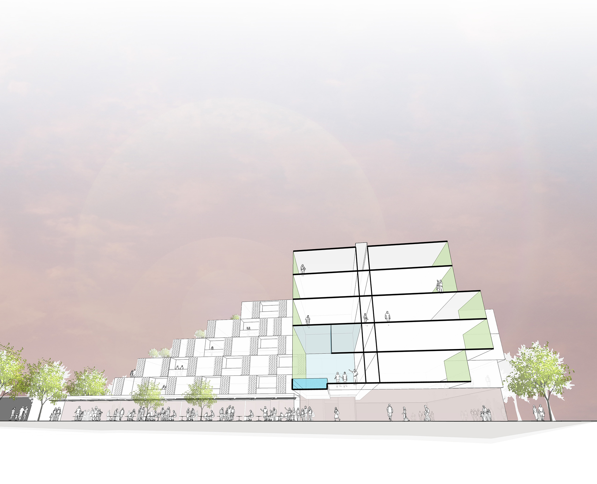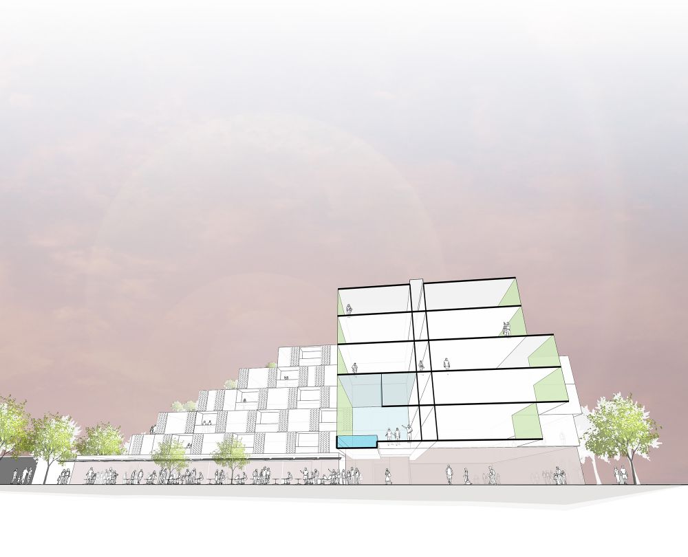 As part of a competition entry for a new mixed use residential project on Unley Road, JPE developed a striking design solution that referenced the adjacent Cremorne Hotel, and the local brick and block patterning. A strong planning approach ensured that the amenity of the adjacent properties was retained, while providing over 160 apartments, a retail plaza at ground level, home offices and studios, and a recreation facility for the residents.