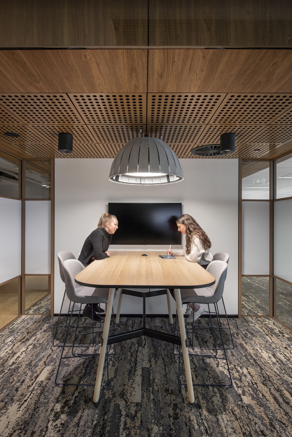 A warm and textured material pallet blurs the line between work and life in our recently completed fitout in Adelaide’s CBD. Aligning with current and future workplace trends, this high-performance environment focusses on well-being and usability with a variety of flexible settings for staff to engage, connect, meet and share knowledge. With a focus on quality, culture and context, the Adelaide CBD fitout breathes new energy into this working environment, enhancing the physical workplace and fostering the needs and desires of their team.