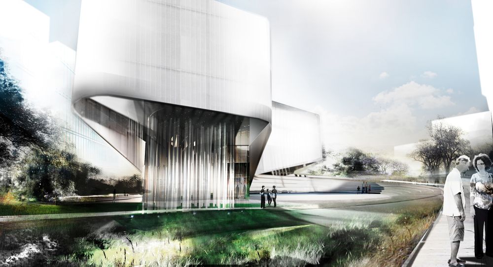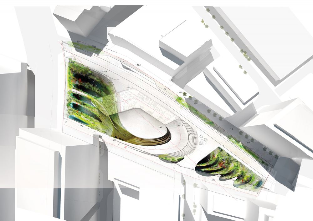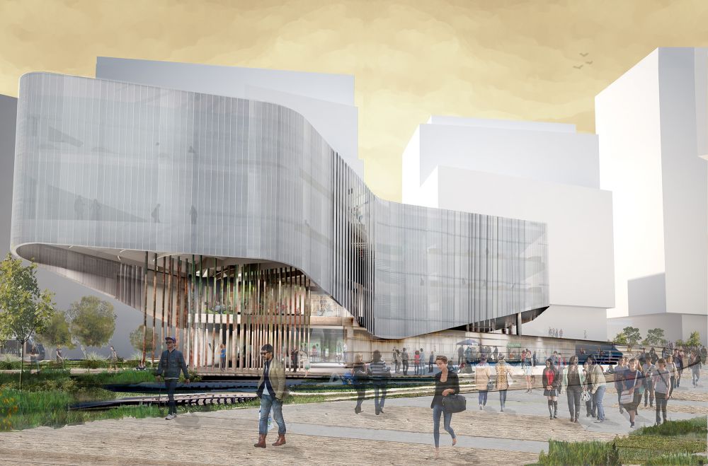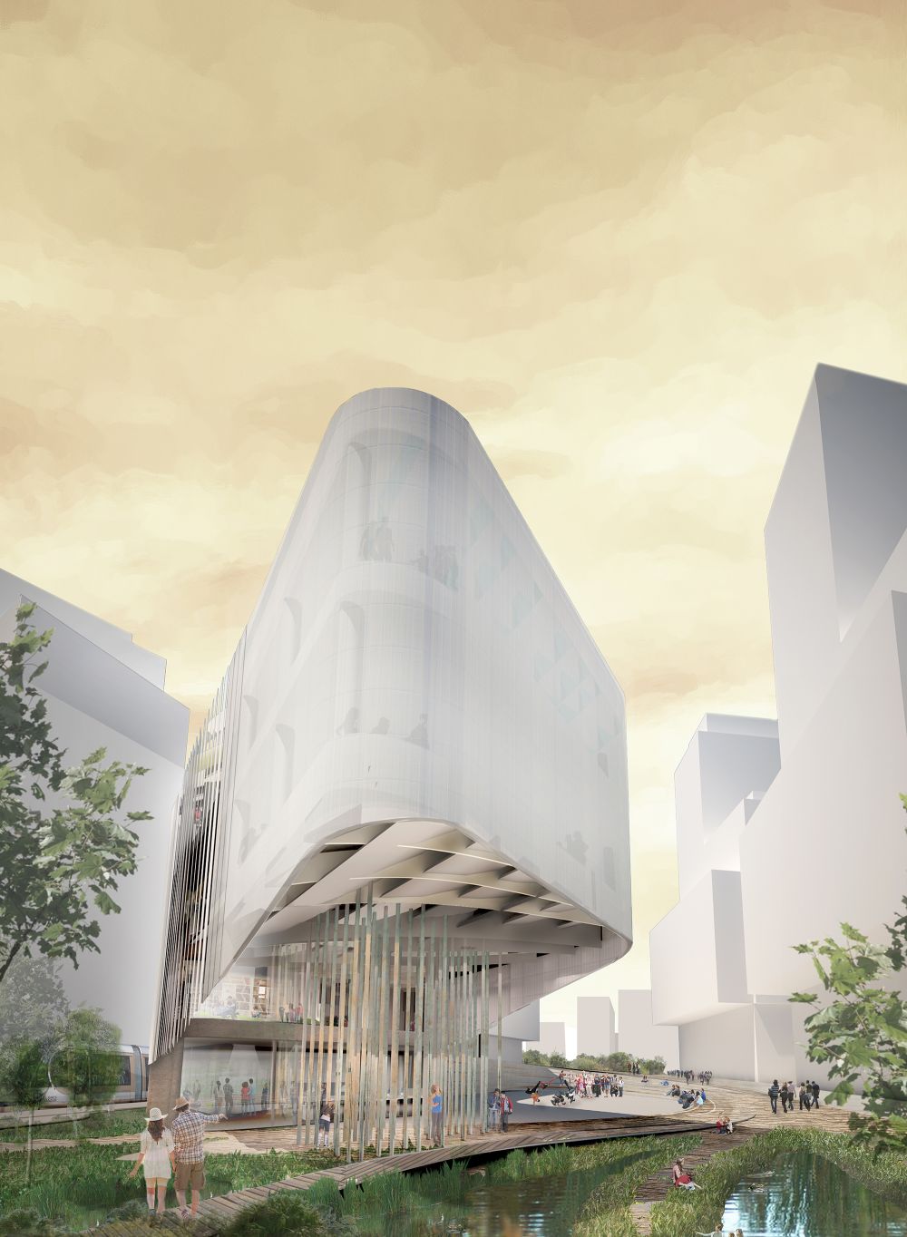 JPE Design Studio were one of five finalists in Sydney’s Green Square Library and Plaza Design competition drawn from 168 entries from 29 countries. JPE collaborated with internationally acclaimed Norwegian design firm Snohetta for the second stage of the project, and further explored and developed the themes generated from the original concept relating to the fluidity and porosity of water and knowledge.