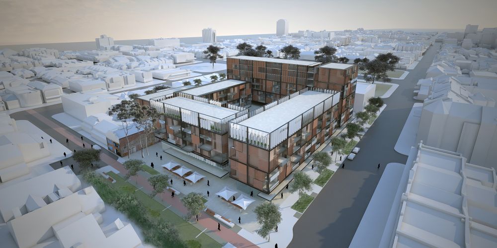 As part of an open registration of interest proposal for Renewal SA, JPE Design Studio in collaboration with Cox Architecture and Hindmarsh, developed a mixed use - mixed accommodation scheme for an existing site in the Adelaide CBD. Our concept was ultimately selected as the preferred scheme, and provided a series of distinct apartment buildings arranged around shared community space, and an activated public plaza fronting the primary street frontage.