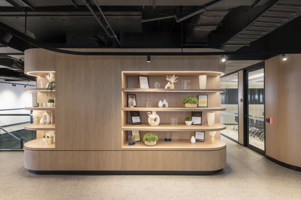 Taking on the KBR staff consultation feedback our design approach was to use a refined materials palette that provides both a warm, welcoming and calming environment for staff and clients, juxtaposed with sophisticated and edgy forward-thinking elements, using sustainably focused products. The spatial planning was zoned to foster staff and client relationships. Another key focus was to design for a better workplace experience with a focus on well-being. The final key element was to feature KBR’s history of projects by highlighting how KBR have shaped both South Australia and their work globally.