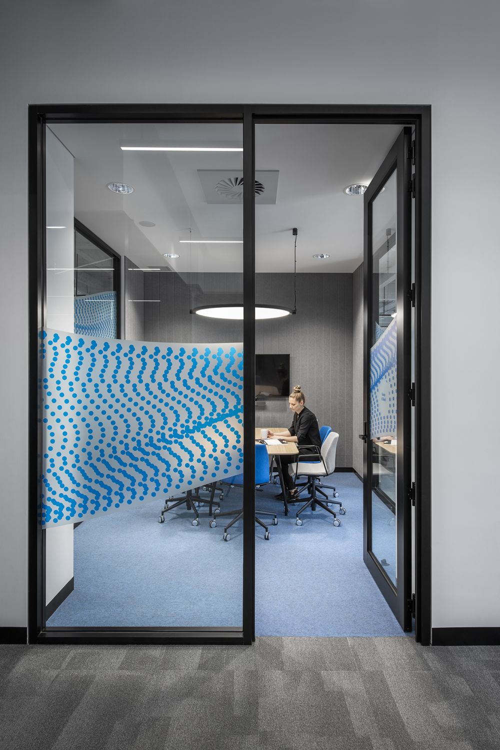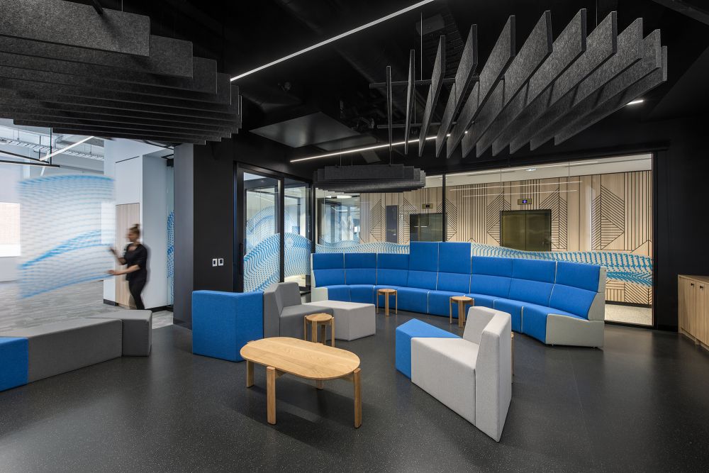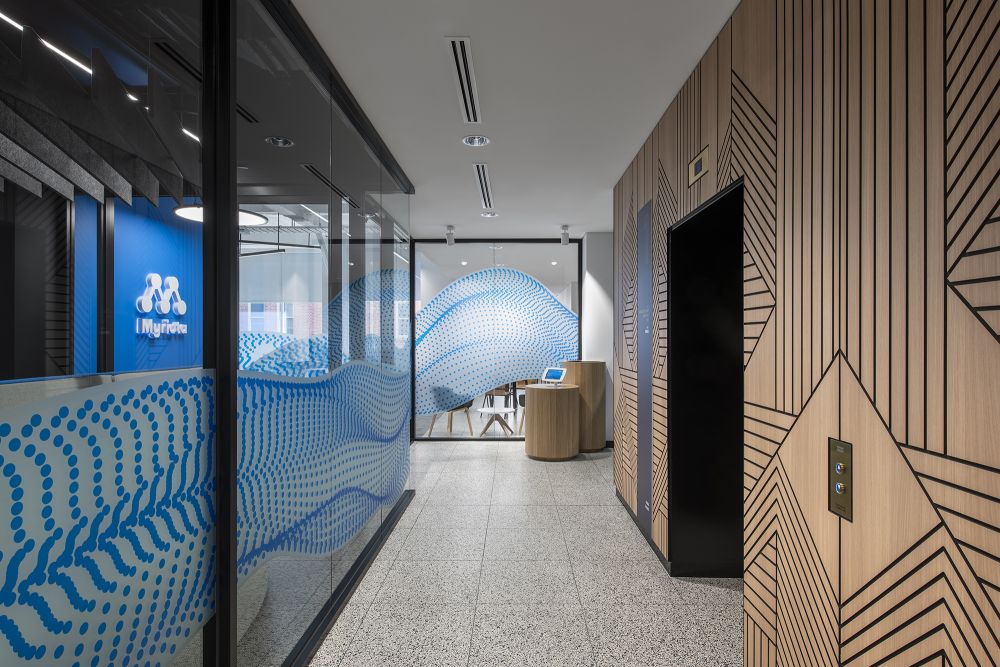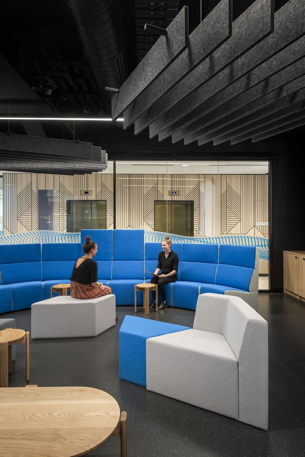 A series of carefully positioned spaces to focus on individual tasks as well as come together in teams have been planned. The multi-purpose Innovation Centre with retractable glazed walls and modular furniture allows the space to be configured in a multitude of modes for Myriota to share ideas and interact with clients. A warm and textured material palette, seamless integration of technology and spaces to suit a variety of modes of working, the workplace creates a comfortable environment that maintains a professional identity and is well equipped to grow and adapt with Myriota as they continue to excel into the future.