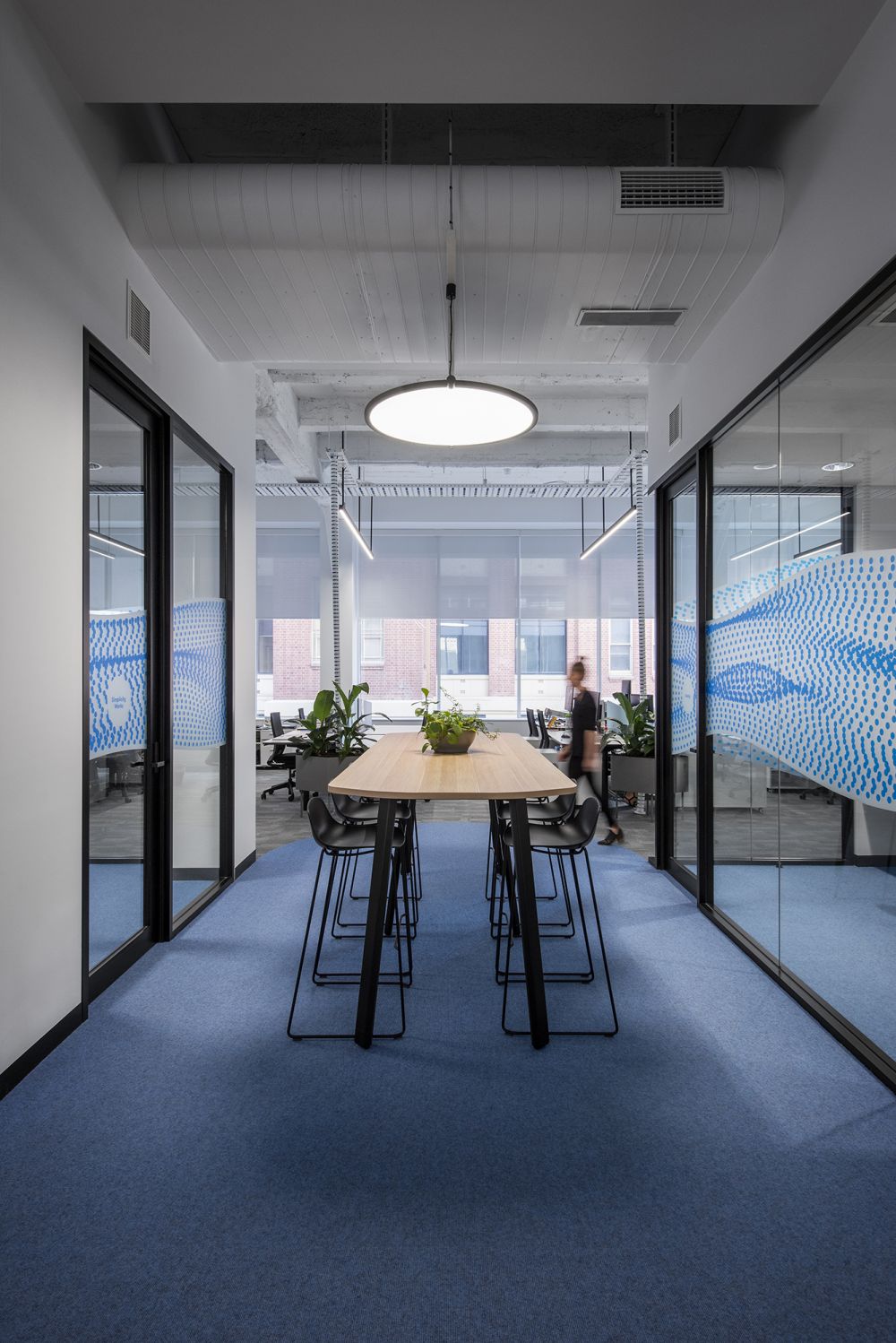 World leading satellite connectivity company for the Internet of Things (IoT), Myriota, have found a new home within Adelaide’s Innovation Neighborhood Lot Fourteen. In stark contrast to the highly technical and complex nature of Myriota’s business, the physical workplace itself is designed to provide balance with a focus on simplicity and the notion of “keeping it real.” A deliberately modern workplace interior sits within the generous heritage envelope of the McEwin building which has been pared-back and provides an ideal backdrop to the colourful and energetic space for Myriota.