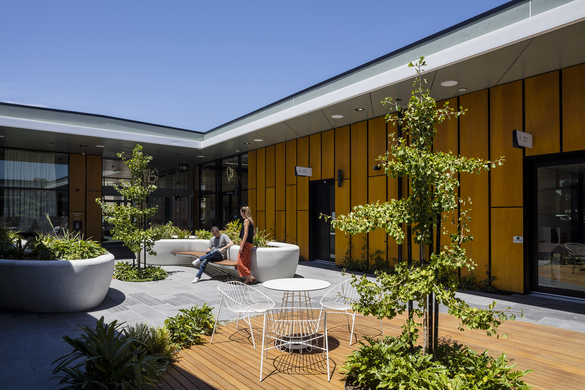 With an emphasis on blurred indoor-outdoor spaces and a natural flow of movement from public realm to public place, the Parks Library and Community Centre is oriented around a central community garden that has been sliced into the overall form of the surrounding building pavilions. The project comprises of a library, arrival and customer service space, administration building, community function centre and associated kitchen, meeting rooms, amenities and a central community garden.