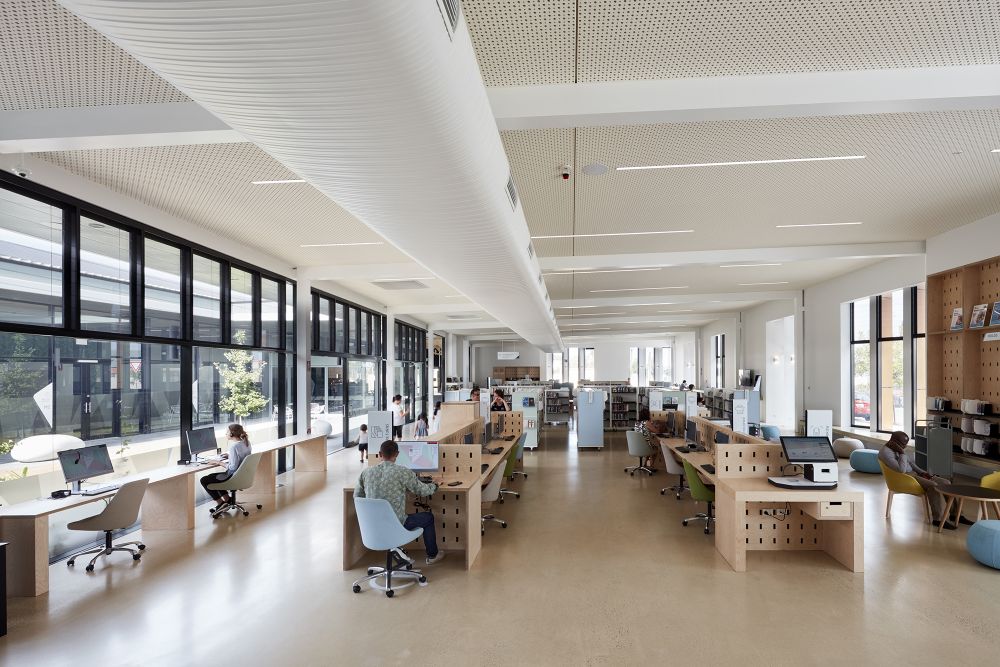 Wrapped in a responsive façade, the building opens up to invite people in from the surrounding precinct and neighbourhood. The central garden is the heart of the facility, and will function as a foyer flowing through to a reading garden, event and exhibition space, and will be an all-season welcoming and relaxed gathering space.