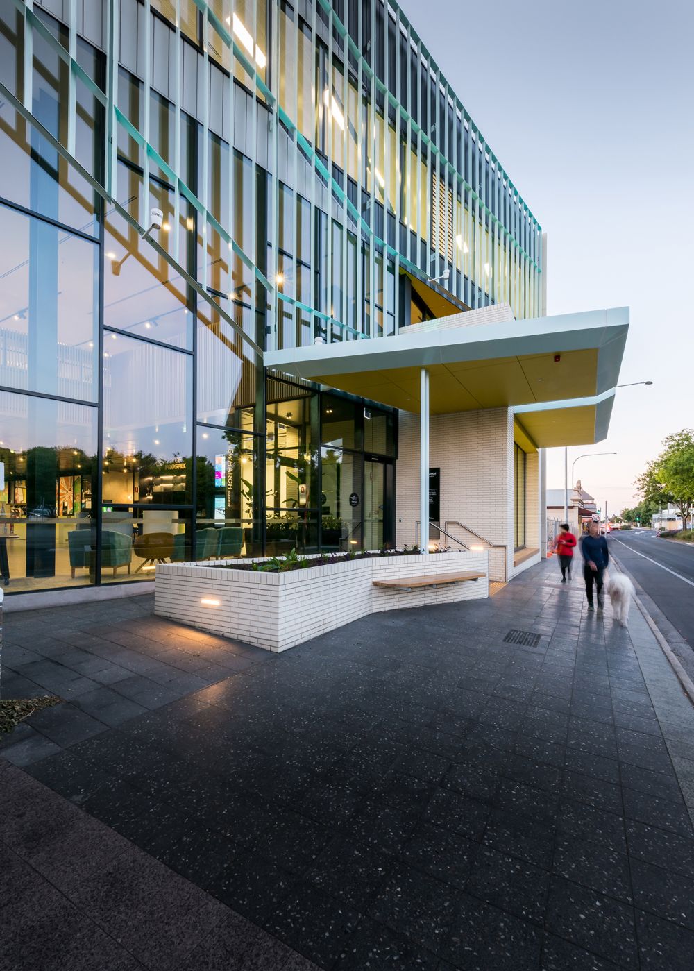 Portions of the external facade are ‘cloaked’ in a translucent and protective skin which provides shading and ventilation to the façade glazing and is sculpted in such a way as to reveal and conceal selected areas of the internal activity. The existing heritage listed town hall is fully integrated into the project, with restoration works and internal modifications to ensure that its value in the council is embraced into the future. Payinthi encourages engagement with the community and business, with a tenancy space designed into Level 3. Day and night functionality is planned to invigorate Prospect's developing urban realm.