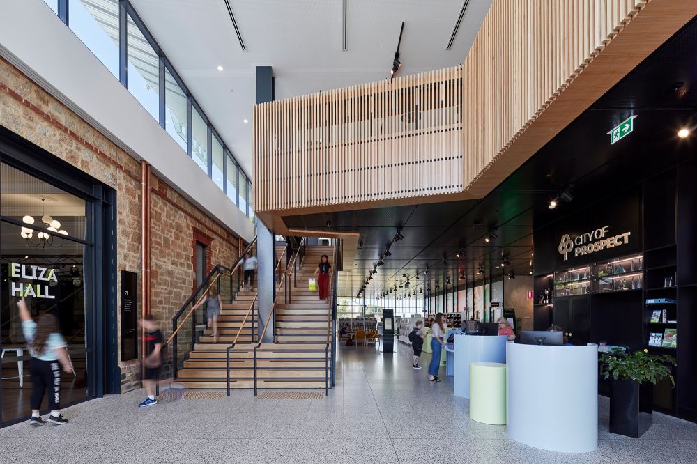 Located alongside the existing Prospect Town Hall, the Payinthi building (previously Prospect CLIC) reflects the aspirations and identity of the local community in a smart, creative and connected new building. This project consolidates Council administration, the library and art gallery, facilitating for community group use day and night. It also signifies the Council’s development plan to increase density along Prospect Road, with Payinthi being a benchmark for future development. An intensive consultation process with Council, staff and the community helped establish the key design themes unique to Prospect and underpinned the decisions made for the design intent.