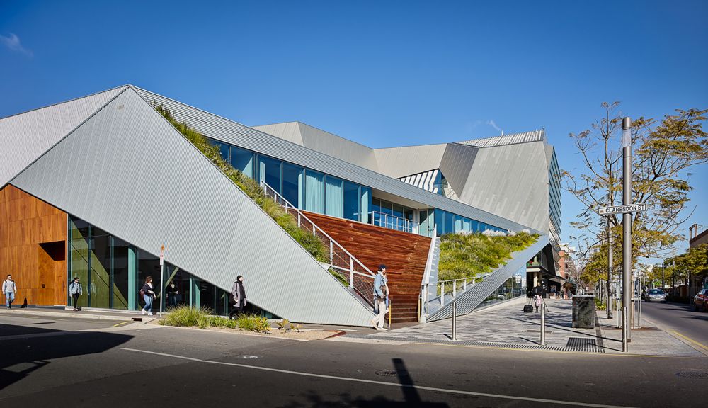 Multi-purpose sports facilities include a hall with multi-use courts, a 25m pool and gym facilities with the ability to curate social sports activities in the lobby spaces. Accessible external public amphitheatres fold to the ground plane to the north and west flanked by floating green gardens, integrating into the existing Høj Plaza for students, visitors and the Adelaide community to enjoy. A democratic place of celebration and renewal; Pridham Hall is a new public realm typology for Hindley Street and a benchmark for socially focussed, educational development in the city.