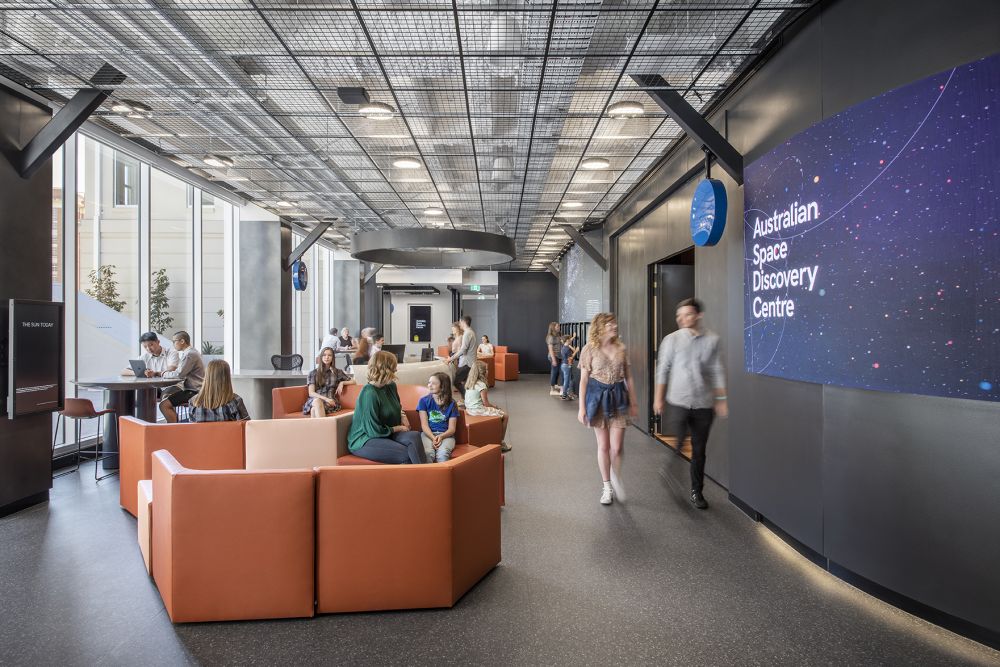 Located on the ground floor of the State heritage listed McEwin building and integrated within the Lot Fourteen precinct, the Australian Space Discovery Centre connects to the creative tech eco-system emerging here in Adelaide. The Space Discovery Centre promotes learning and collaboration through interactive experiences that will expand the public’s understanding of Australia’s role in national and global space missions.