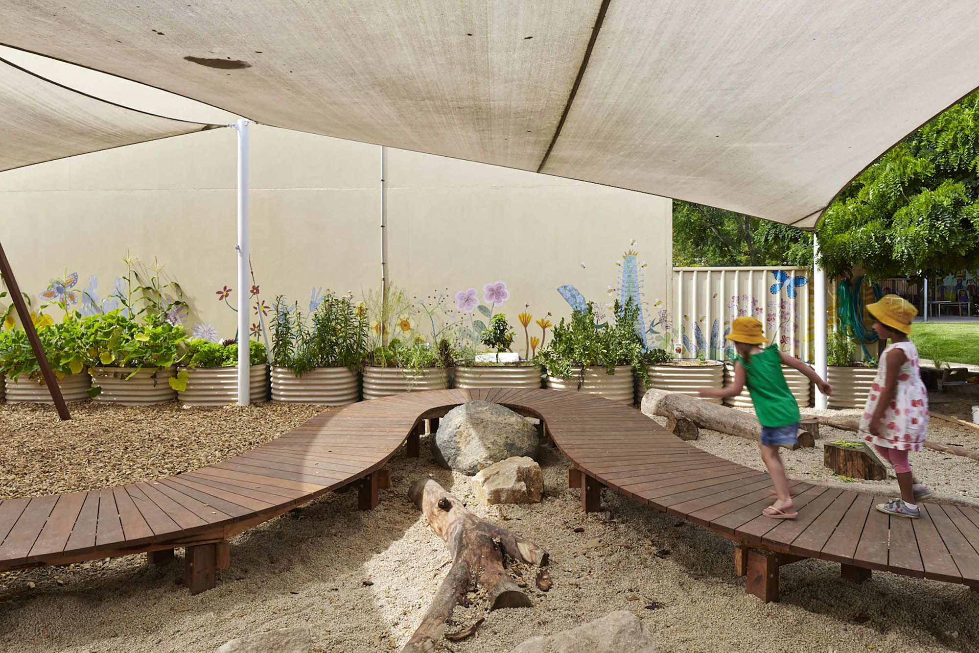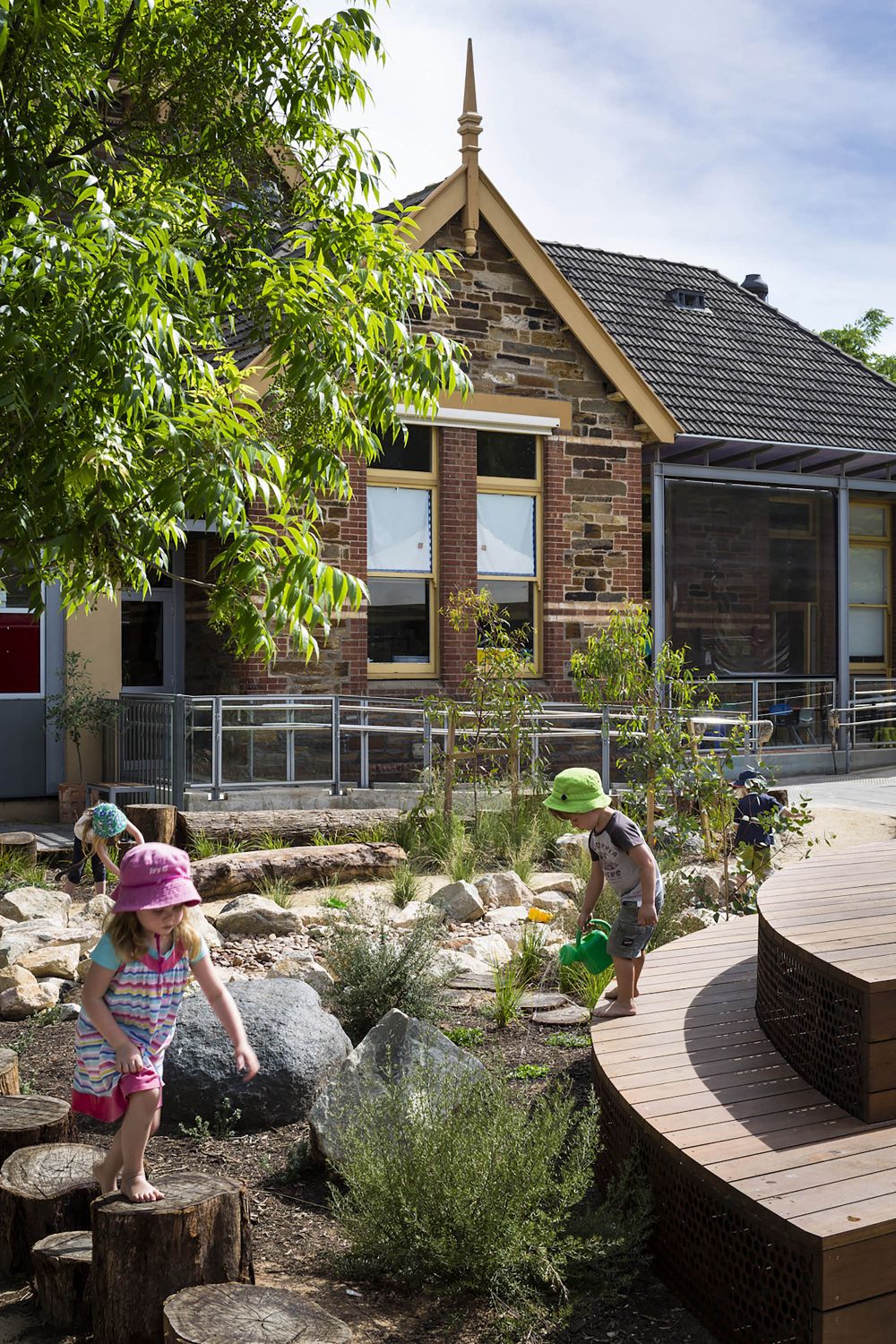 The Sturt Street Children’s Centre design response explores the importance of natural systems in a built, predominately hard landscape, and the contrast between each typology. Sturt Street Children’s Centre is located to the western edge of the Adelaide CBD, along Sturt Street, situated within the Sturt Street Primary School. The design for the outdoor learning area needed to provide inclusion for older children beyond preschool age, i.e. 5-7 years.