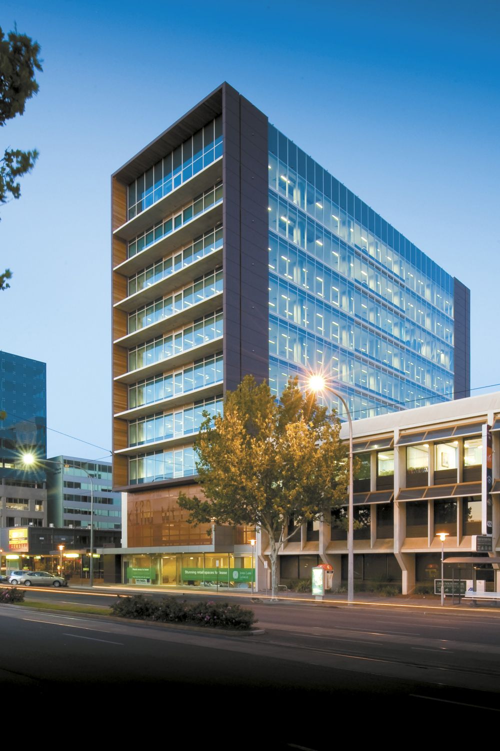 Located within the emerging southern business precinct of Adelaide, The Edge is an iconic 5 Star - Green Star commercial development. The building is designed to incorporate floor plates to create column free floors that maximise the sweeping, unobstructed views to the city, parklands and hills beyond. The patterned façade of the building is made up of highly detailed perforated mesh panels with graphic detail, providing a strong design feature which is both unique and dynamic.