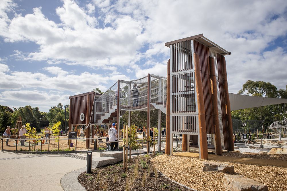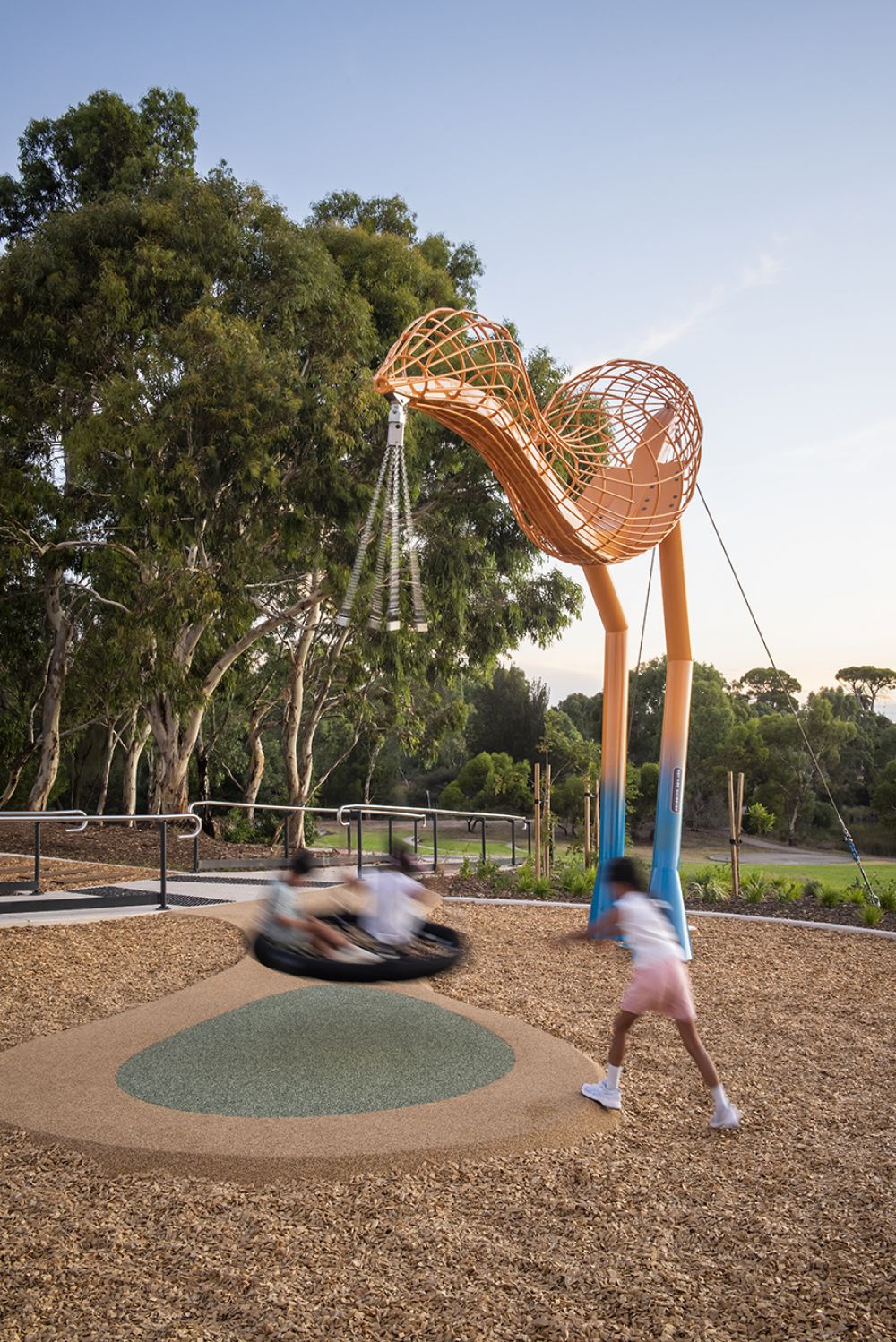 The relationship to the adjacent event spaces makes this playspace a crucial component and activator within the framework of Thorndon Park. With capacity for local tourism and placemaking, this exciting play destination will assist in drawing people from all over Adelaide to visit the Park and the greater Campbelltown region which will be beneficial in supporting surrounding local businesses and the popular Moonlight Markets. The immersive nature of the design ensures that the wonder and joy experienced through this unfolding playspace is experienced by all, with inclusive and accessible features underpinning each space, providing quality experiences for all who visit.