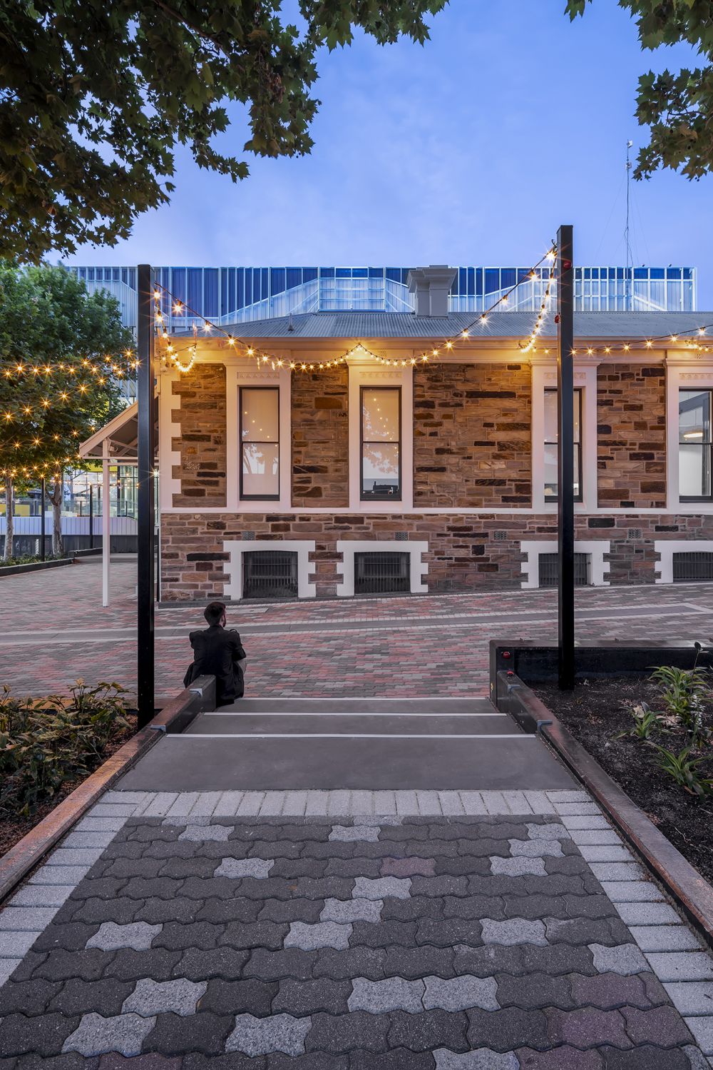 Our team were engaged by The City of Prospect to transform Vine Plaza, a previously dark and underutilised laneway, into a vibrant pedestrian passage and place of pause. The reinvigoration of this public space now opens up to the community, extending from Prospect Road to create an inviting and peaceful green oasis within a highly urban environment. Providing quiet relief from the busy streetfront, Vine Plaza gives valuable space for seating and relaxation, creating a serene place for contemplation and connecting back to the natural environment.