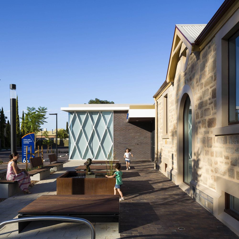 Our design for the Civic & Community Centre was motivated by the Town of Walkerville’s sense of community, its historic vernacular and the opportunity for celebration and growth within the Town. The project brief required a new public library, Council admin areas and the restoration of the locally listed Town Hall building on the site.