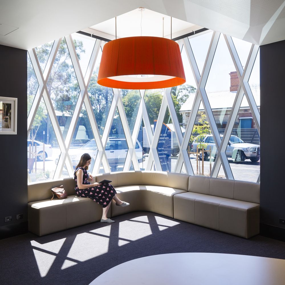 The notion of a ‘Public Living Room’ inspired the internal planning, connectivity, materiality and detailing to create spaces that are grand yet welcoming, public yet personal. Like the Town itself, the new Civic & Community Centre has its own personality – bold and rich in detail and texture. It connects with, and reinforces the character and significance of the Town Hall – inviting further exploration and providing Council and the local community with an inspiring place to build on its past and grow into the future.