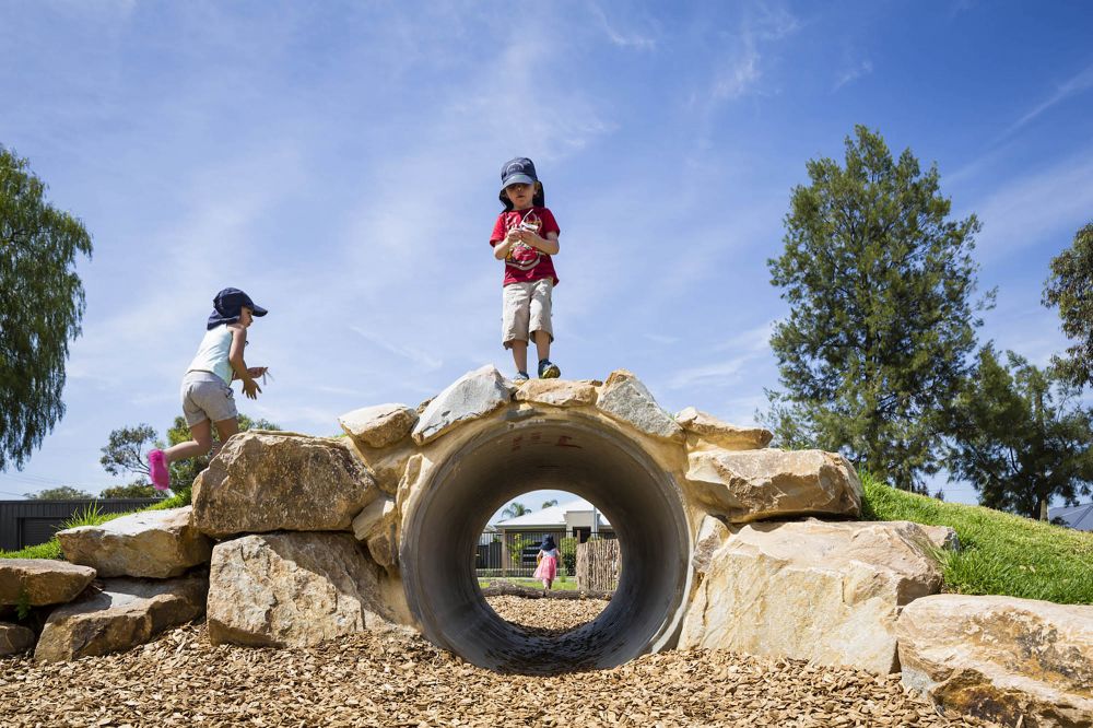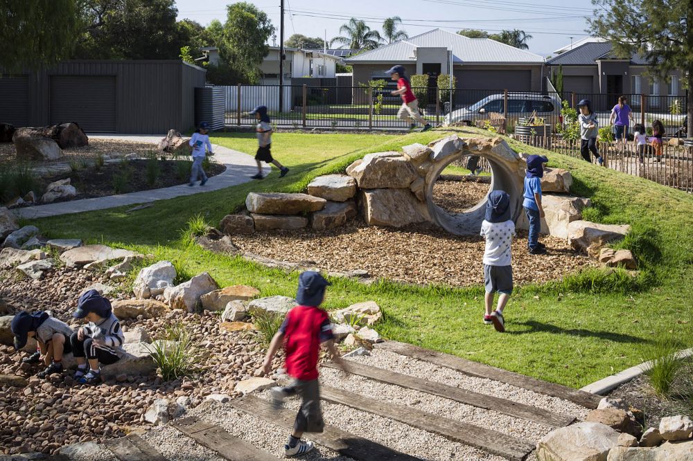 The Wandana Child and Parent Centre at Gilles Plains, opens the site to local community and families from multiple ethnic backgrounds. Open spaces offer families within this school area the space to gather, interact and enjoy play whilst connecting with local community. The design response has been developed around a language which crosses all cultures, play. Language, communication and interaction can occur in many forms; dance, play, singing, art, literature and performance, to name a few. With a culturally diverse community network, it is important for Wandana’s outdoor space to speak to children in many forms.