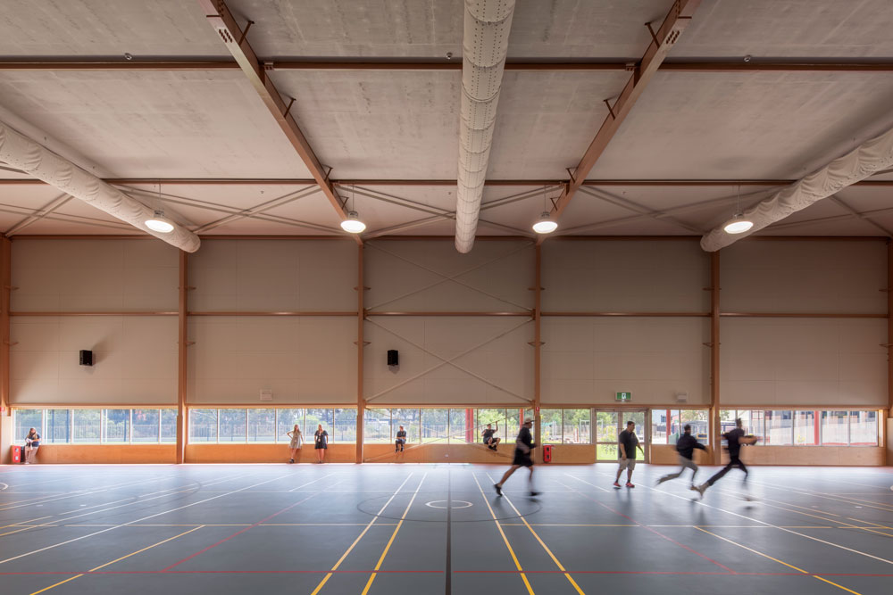 The new gym building provide students with a much-needed space to play and gather - designed to host whole-of-school assemblies when needed. The simple and efficient layout incorporates a main hall space, storage and fitness areas, amenities and teacher preparation spaces, while providing students with a constant visual connection to the bush and river settings on all sides.