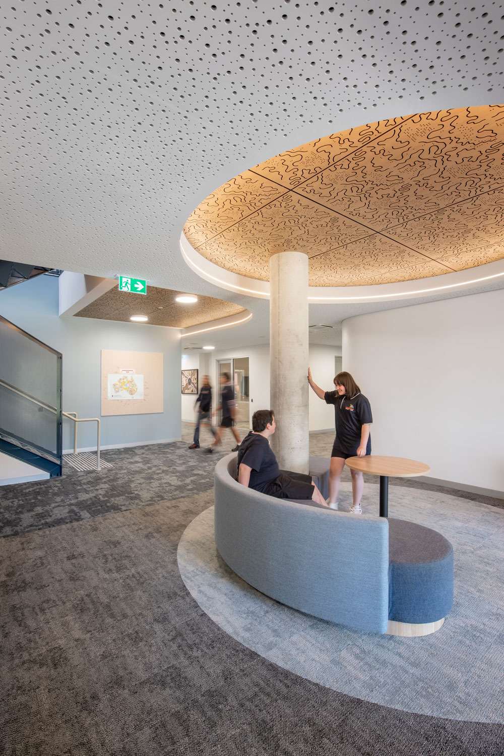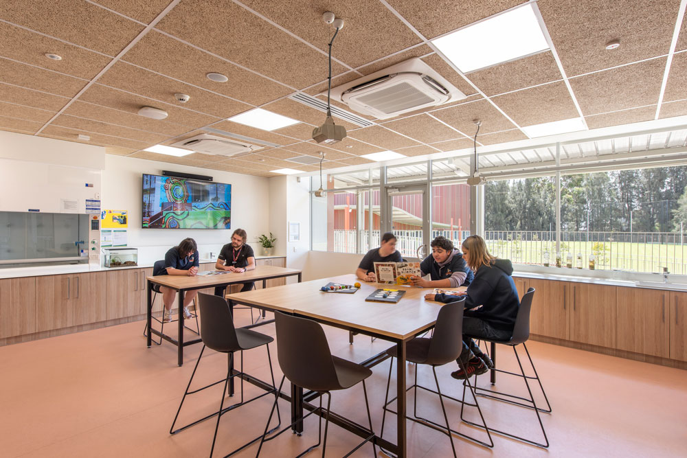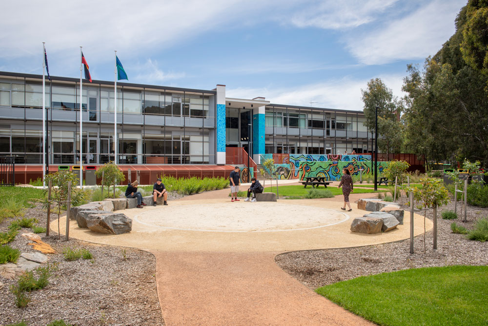 The new school is home to 150 students across years 7 - 12, and includes a new learning and administration building, a new gymnasium, and a range of landscaped outdoor play spaces and yarning circles. The overall design placed a strong emphasis on visual and physical indoor-to-outdoor connections, enabling students to experience the landscape and to freely move between spaces in a safe and flexible learning environment.