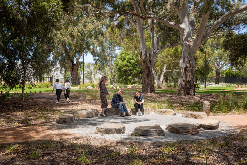 A beautiful bush and river setting is Warriappendi Secondary School’s new home. The site, part of a masterplan to relocate the school and a local bowling club due to the Torrens to Darlington project, is located in Thebarton along the banks of Karrawirra Parri (River Torrens) and provided the unique opportunity to establish a welcoming, safe, and inviting education facility with connection to Country forming the foundation of the campus experience.