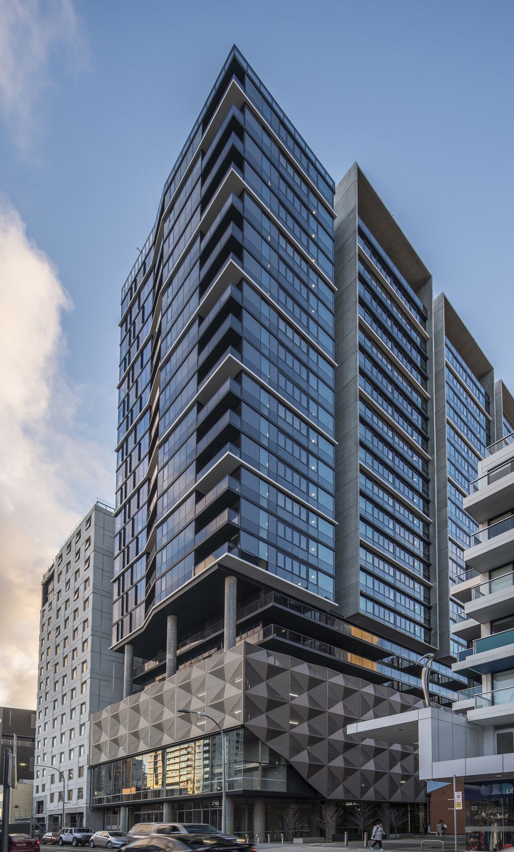 Located in Adelaide’s vibrant Waymouth Street precinct this 28-level tower comprises of restaurant and café tenancies, a unique mix of residential accommodation, a communal roof garden with panoramic hill and coastal views, and a new plaza and pedestrian connection between Waymouth Street and Playhouse Lane. The external expression echoes the programmatic layering, while the innovative adaptable internal layouts provide a range of accommodation types.