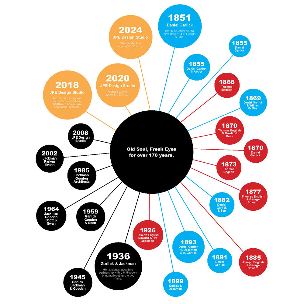 You may have thought that architectural firms were traditional; we never have been. The greatest legacy of the Practice is that we have been adaptable and responsive to change for 170 years. We have had a continuous lineage of Directorship since 1851 making us the oldest Architectural Practice in not only South Australia, but Australia. We are very proud of our rich heritage and impact the firm’s lineage has had on the fabric of the city of Adelaide. The longevity of JPE forms a key part of our culture and identity as we strive to continue this great legacy as a contemporary Practice into the future.